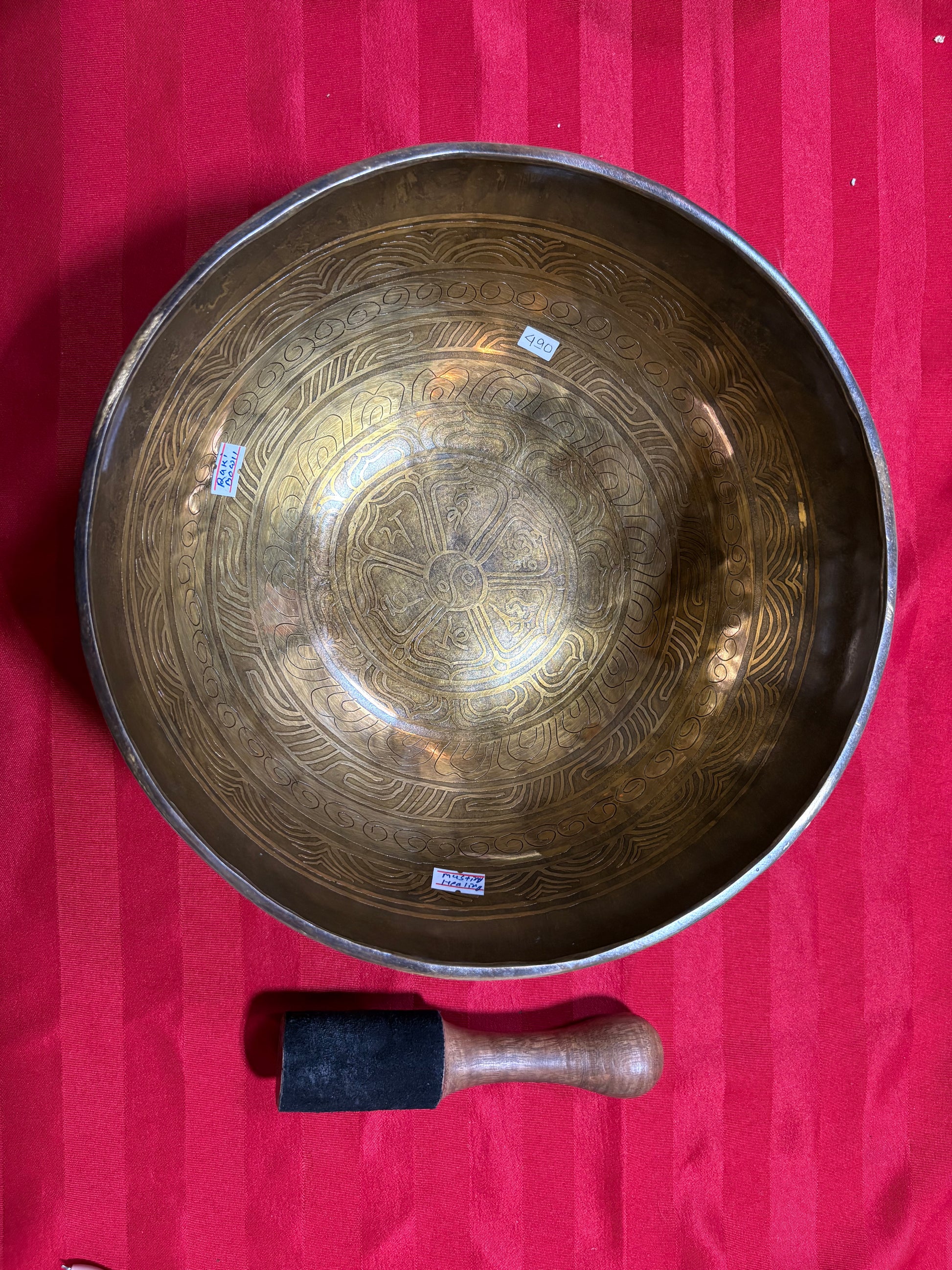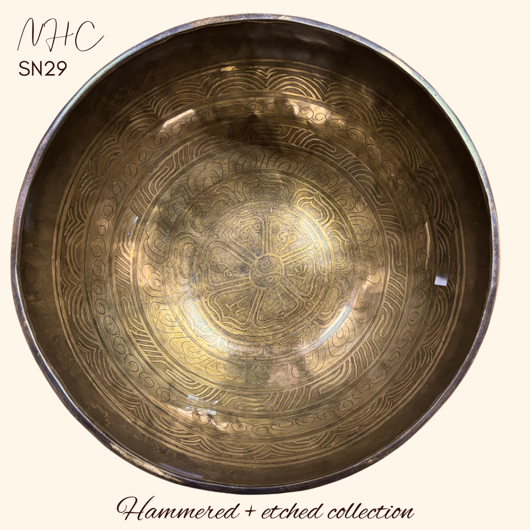 This beautiful hand hammered + carved bowl is priced at $490