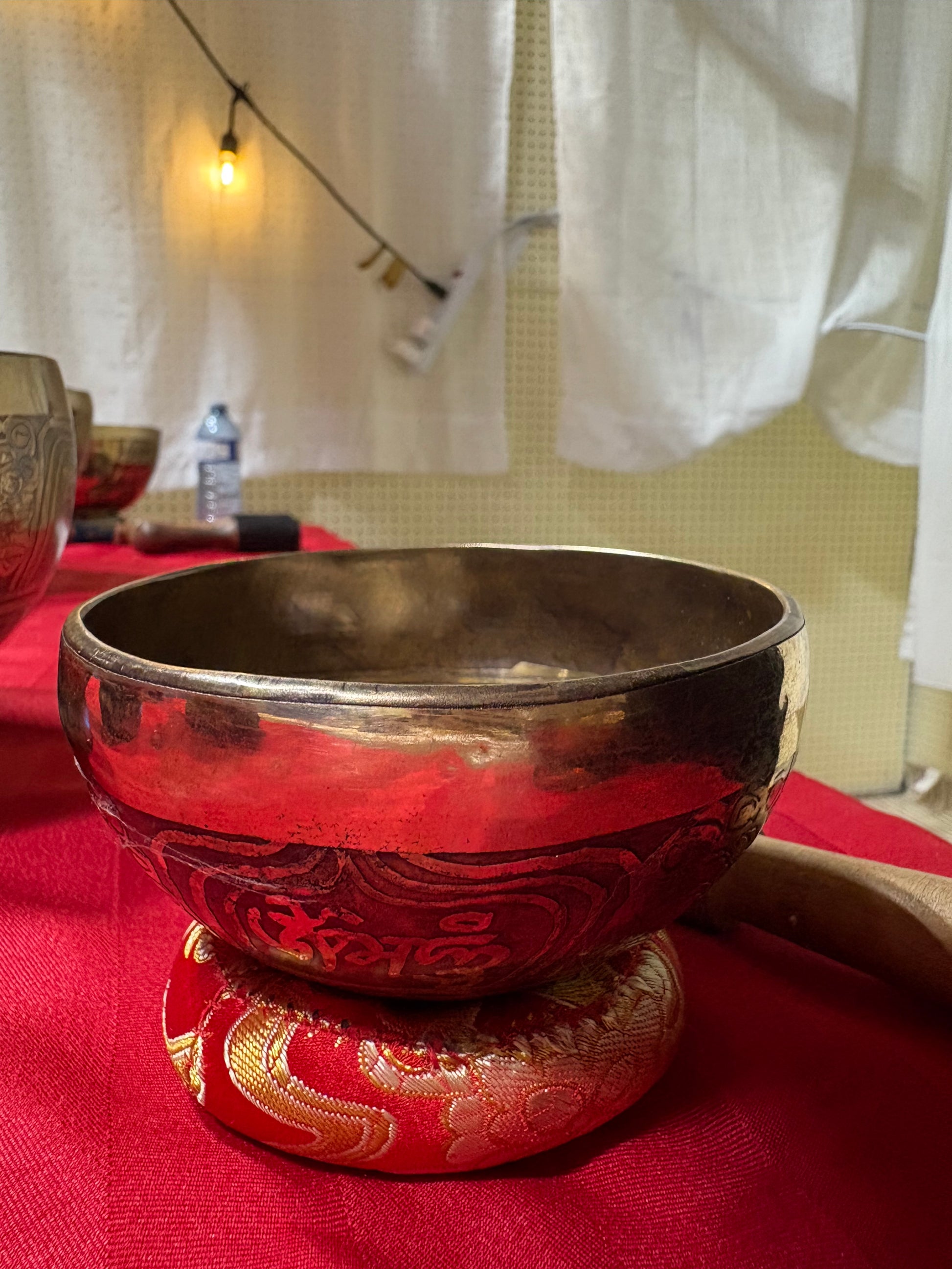 This beautiful hand hammered + carved bowl is priced at $60